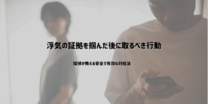 浮気の「証拠」を掴んだとき、まず大切なのは冷静さと証拠の保全です。感情に任せて行動すると、証拠が無効になったり、逆に不利な状況を招くことがあります。この記事では、探偵の現場経験にもとづき、証拠を掴んだ後にとるべき安全で有 […]